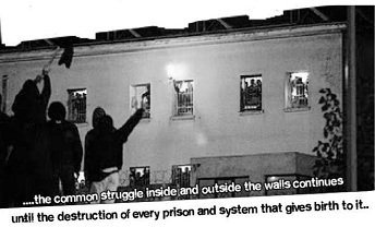 “Prisons are today, and always been, punishment weapons that the establishment uses against anyone putting at risk private property. The exploiters use repressive systems for this matter in order to carry on their privileges and keeping the order and laws they shelter on, their filthy status quo. (…) It is time to take action, on an everyday basis, along with our related comrades, for the destruction of the prison society and any social attempt to amend this filthy death system. Solidarity must never be an empty slogan, but an everyday action against the establishment and a constant support to our brothers and sisters kidnapped during this war to death”.