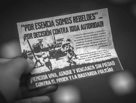 Not only have these been 100 years of rebellion, but also 100 years of murders against the popular class. Justice has not been received, and it’s for this reason that we cast ourselves onto the uncertain but necessary path of vengeance and street struggle.
