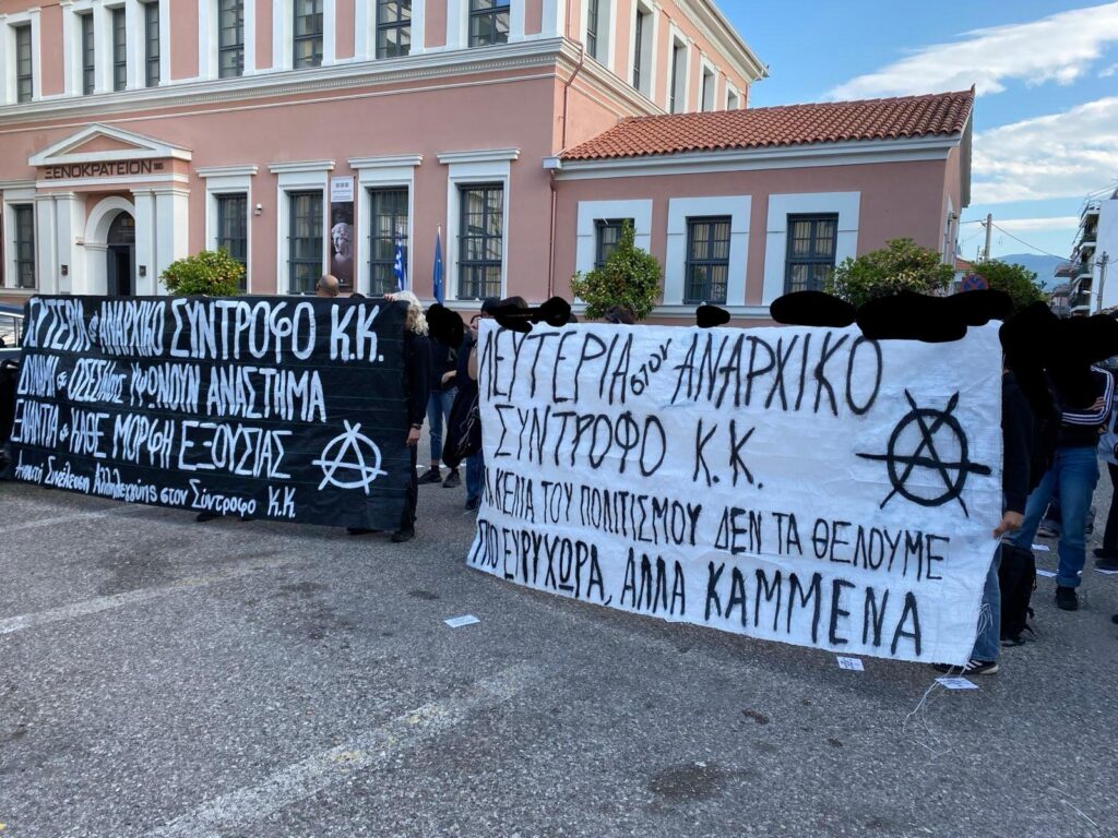 2/5/25/ : Comrade K.K. was found guilty of 4 of the 6 charges and innocent of 2. He will be released with a reprimand and a fine. The gathering outside the Messolonghi courts was joined by approximately 70 comrades.