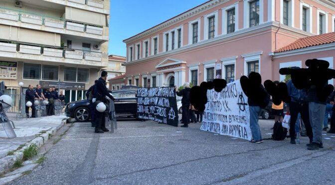 2/5/25/ : Comrade K.K. was found guilty of 4 of the 6 charges and innocent of 2. He will be released with a reprimand and a fine. The gathering outside the Messolonghi courts was joined by approximately 70 comrades.