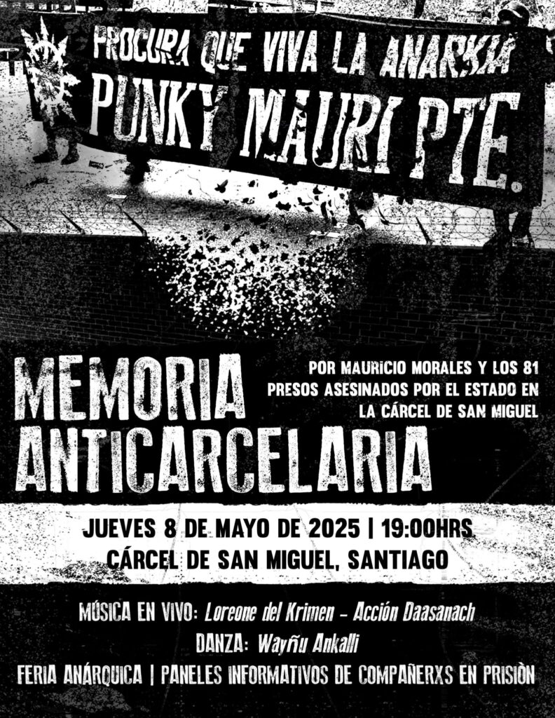 Soon we will mark the 16th anniversary of the death in action of comrade Mauricio Morales, when the explosive artifact that he intended to place at the prison guard school exploded prematurely and with a wink of complicity for the 81 prisoners assassinated by the State in the fire in the San Miguel prison on December 8, 2010.