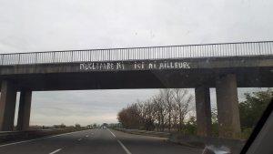 This week of April 2025 we expressed our opposition to the construction of 2 additional reactors at the nuclear power plant of Bugey on walls and bridges of the Ambérieu-en-Bugey region.