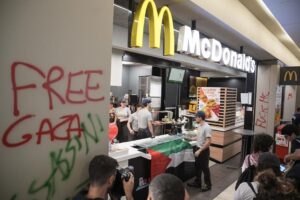 In Italy thousands of people, under the slogan “Lets block everything”, came out into the streets in 90 Italian cities last week to denounce the genocide of the Palestinian people and the Italian government’s complicity in it. In some demonstrations clashes broke out with police when they tried to prevent the blocking of highways, railway stations and ports. The general strike in support of the people of the Gaza strip and the Global Sumud flotilla was declared by all the main unions, the Unione Sindacale di Base. All the branches participated, from public transport to the railways, from schools to the health care system. In Livorno, dockworkers and other groups occupied the port for three consecutive days, preventing the US ship SLNC Severn from mooring, which was carrying vehicles and trucks for a US military base in Pisa. In Taranto, dockworkers and other groups prevented the Seasalvia oil tanker from mooring, as it was waiting in the port to load 30,000 tons of crude oil for the Israeli air force. In Ravenna, the dockworkers identified and prevented containers filled with weapons intended for the Israeli army from loading. In Trieste, dockworkers have been striking against the mooring of MSc Melani III, which was carrying weapons and war material intended for the Israeli army. In Genoa, dockworkers and other groups demonstrated outside the town hall against the mooring of a ship loaded with steel intended for military use in Israel the following days. CALP dockworkers prevented the loading of war material on to the Zim New Zealand ship, occupying the Spinelli terminal and declaring an immediate strike. In the evening, a march with over 25,000 participants went through the city. In Salerno, dockworkers and unions stated that workers would refuse to handle loads intended for war. In Padua, thousands of people participated in the demonstration, occupying the regional road. In Turin, thousands of people clashed with police while trying to get to the airport. In Brescia, over 10,000 people occupied the ring road heading to the headquarters of Leonardo Spa, the top weapons manufacturer in the European Union. In Vicenza, protesters blocked first the regional road and then headed to Caserma Ederle, a symbol of the US military presence.