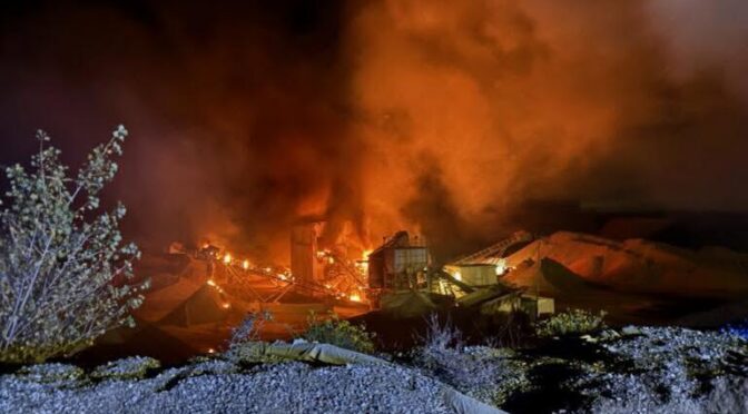 The first act of sabotage targeted the Barris quarry, near the Saint-Marcel-lès-Valence railway line, at around 3:30 a.m.: five construction machines (a 50-ton hydraulic excavator, a 40-ton loader, and three articulated trucks) went up in smoke, as did the building that housed the production plant. The Cheval public works group, which specializes in the extraction of aggregates used in concrete manufacturing, believes that “the separate and distant locations of [three] fires lead us to believe that this was not an accident,” and estimates the damage at five to six million euros. In addition, the destruction of the aggregate production plant by fire will result in the cessation of this activity for “at least six months,” lamented the company’s president.