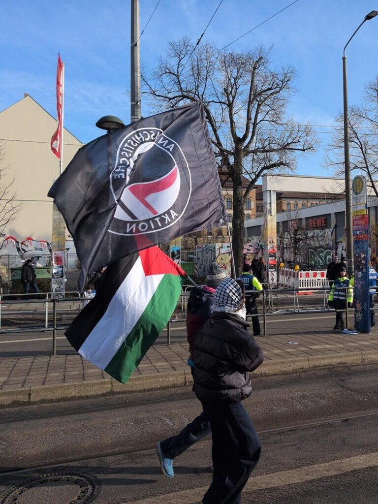 17/01, Leipzig, Germany. Around 3,000 demonstrators marched through the streets of Leipzig and outside the Konnewitz district, against the genocide being committed by the State of Israel in Palestine. The atmosphere was initially tense, as a large police contingent was at the main train station. Several groups travelling there were delayed in arriving due to train delays and some local transport disruptions. Recently, there has been a major division in Germany, and especially in Leipzig, of the autonomous area of ​​Germany, starting with the war in Palestine. A large part of this area supports authoritarian solutions. Some are clearly with the State of Israel(!) while others are with the prospect of creating a Palestinian State. Unfortunately, there are few groups that express solidarity with the Palestinian people while not accepting theocratic, hierarchical, and military-political authorities.
