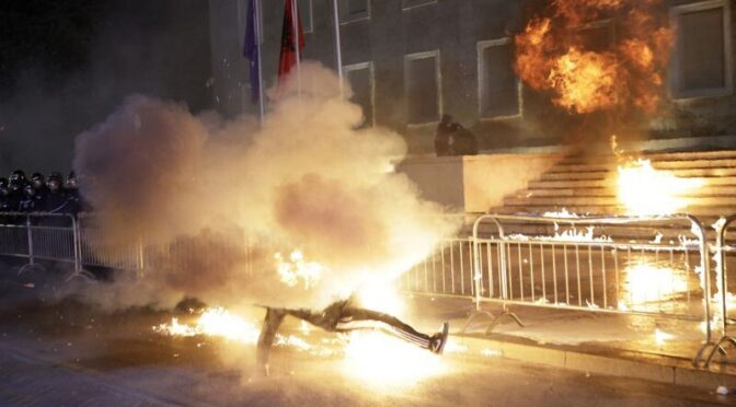 25/01, Tirana, Albania. Clashes and incidents broke out at an anti-government demonstration against corruption in Tirana. Thousands of people attended the demonstration, shouting angry slogans and denouncing corruption. The demonstration, which consisted of unaffiliated people, as well as opposition supporters, demanding the resignation of the government of Edi Rama, resulted in widespread clashes with police forces. Tension started when some protesters threw Molotov cocktails at a government building. The powerful police forces responded with chemical and water cannons. At least 10 police officers were injured and dozens of people were arrested.