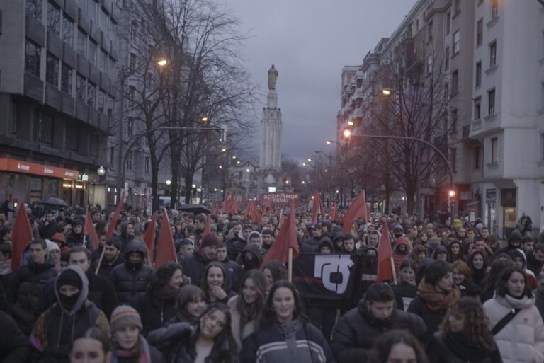 28/01, Basque Country. Over 20,000 people participated in the demonstration against fascism and state authoritarianism. Thousands of people also took to the streets of Pamplona in a large demonstration to protest against state authoritarianism, reflected in the militarisation and strengthening of the repressive police apparatus. The large demonstration in Bilbao and Irunia with the slogan “Faced with the attack of the bosses and those in power, the young people of the working class are fighting back!” had a very clear objective: to denounce the living conditions of the working class, to organise independently and fight for freedom.