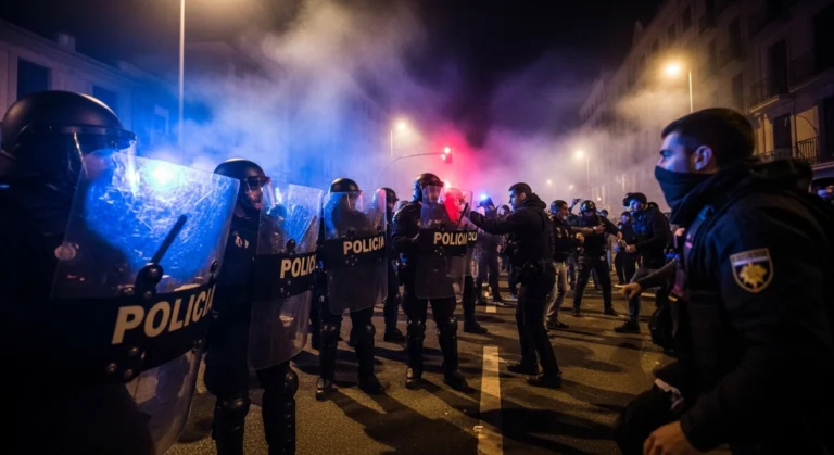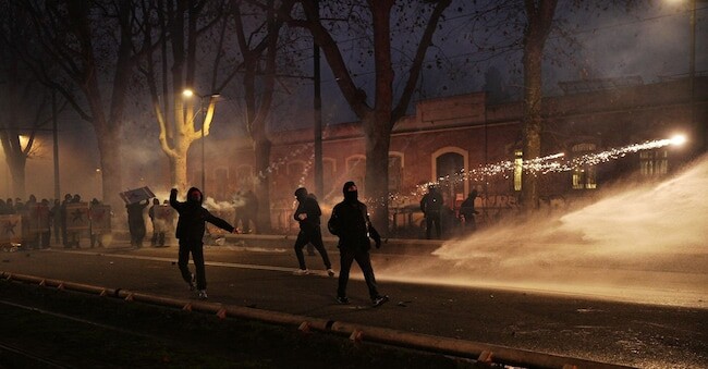 1/01, Turin, Italy. Violent clashes between protesters and police erupted when over 50,000 people took to the streets in solidarity with the Askatasuna social centre, which was evicted by police on December 18, 2025 after 30 years of activity in the area. Hundreds of riot police and dozens of armoured vehicles created a red zone around the historic social centre of Turin to prevent protesters from reaching it. Part of the protesters, who came from the anarchist and anarchist area, broke away from the march towards the end of the demonstration and headed towards Corso Regina Margherita 47, the headquarters of Aska, where clashes with the police began. The police responded to the throwing of paper bombs, rockets and fireworks with water cannons and smoke bombs. A police van was set on fire, as well as several garbage cans in the area of ​​the clashes, while police officers were beaten by protesters and vice versa. More than 100 police officers were injured during the clashes. Ten people were arrested. Initially there was no information on the number of injured protesters. Arrest warrants have been issued for two people. Askatasuna, which means freedom in Basque, is a centre of political and cultural activity created in 1996 that has hosted hundreds of groups, collectives and operates as a centre of social services and activities in the Vanchiglia district of Turin. On March 25, 2000, it was attacked by a group of neo-fascists. At dawn on December 18, 2025, DIGOS, supported by a huge contingent of police forces, proceeded to evacuate and sieze the Corso Regina building, putting an end to almost thirty years of occupation of the building.