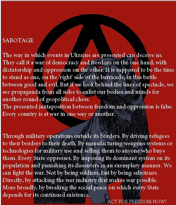 POSTER SABOTAGE: We can fight the war. Not by being soldiers, but by being saboteurs. Directly, by attacking the war industry that makes war possible.