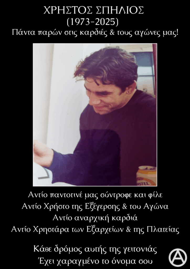 Χρήστος Σπήλιος, πάντα παρών στις καρδιές και τους αγώνες μας! από Σύντροφοι και συντρόφισσες του Χρήστου από τα Εξάρχεια και την Αναρχία